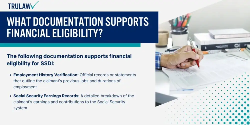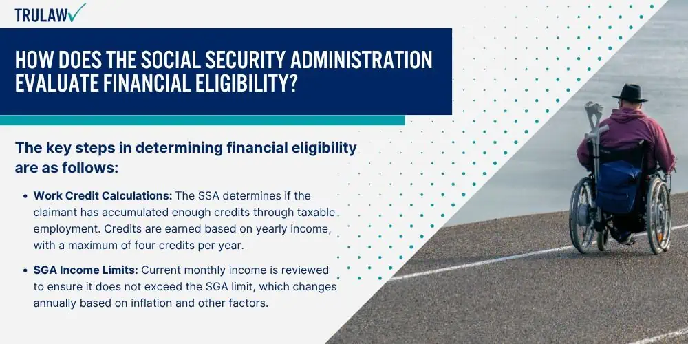 The SSA evaluates financial eligibility by reviewing documentation that verifies employment history, earnings, and compliance with income thresholds.