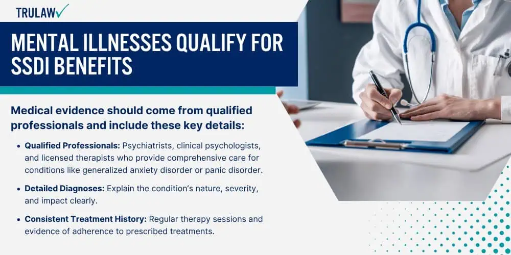 The SSA looks for detailed, objective evidence that supports the severity of the impairment, such as therapy notes, psychiatric testing, and evidence of long-term medical treatment.