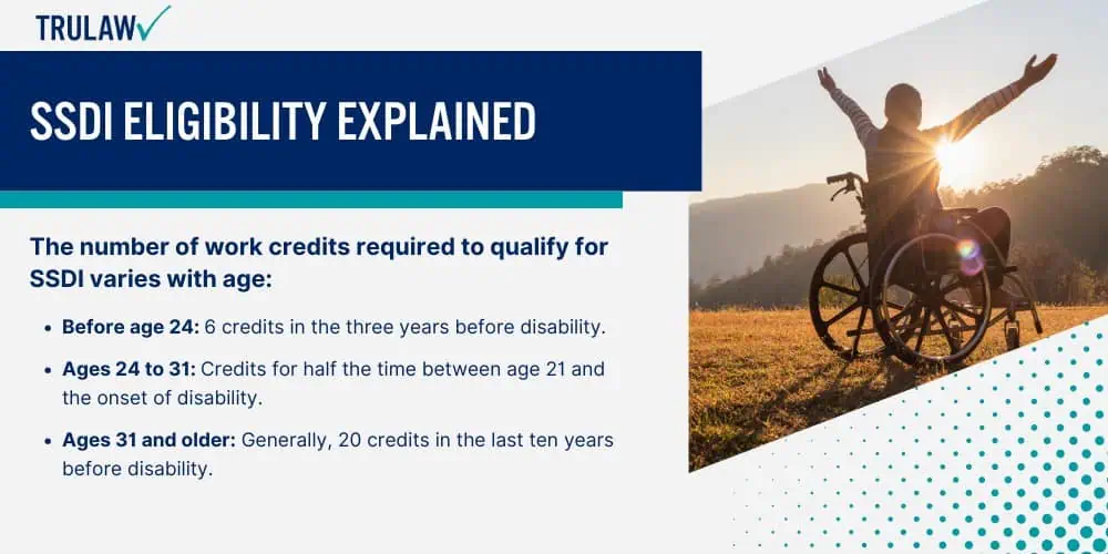 - Ages 31 and older: Generally, 20 credits in the last ten years before disability.