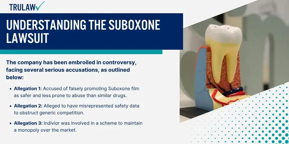 This section delves into the Suboxone lawsuit, focusing on allegations against Indivior and claims of anticompetitive behavior.