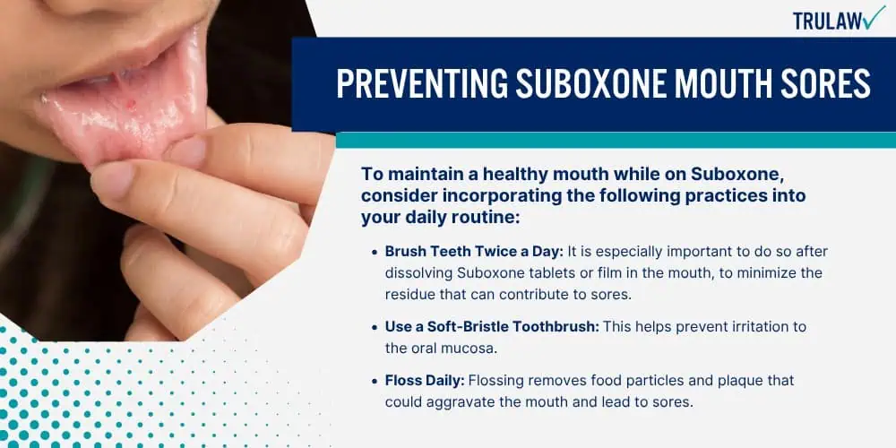 Regular oral hygiene is key in preventing mouth sores for those taking Suboxone.