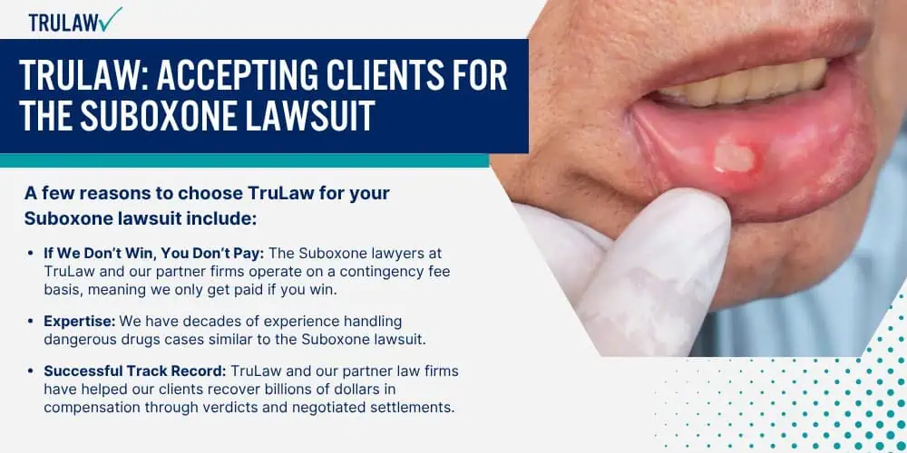 TruLaw is currently accepting clients for the Suboxone lawsuit.